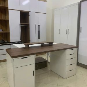 BÀN IKEA 2 HỘC TỦ – MẶT VÂN GỖ HỘC TỦ TRẮNG (D1m6-R60cm-C75cm)